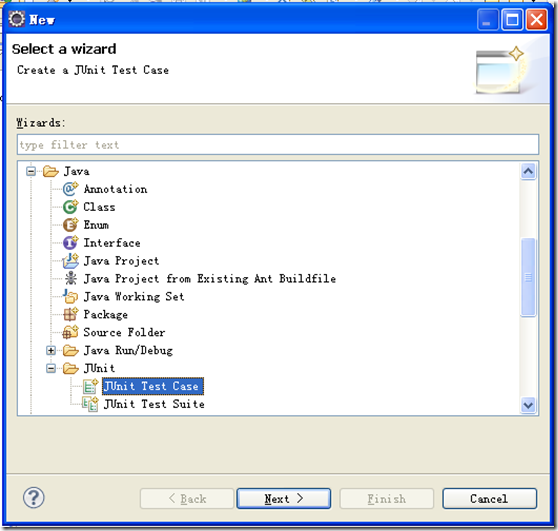 在新建对话框中,选择Java >> Junit >> Junit Test Case