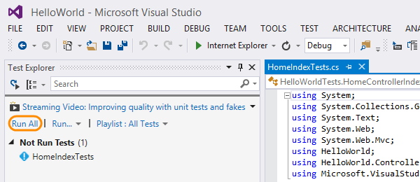 在测试资源浏览器中,可看到通过或未通过的单元测试。