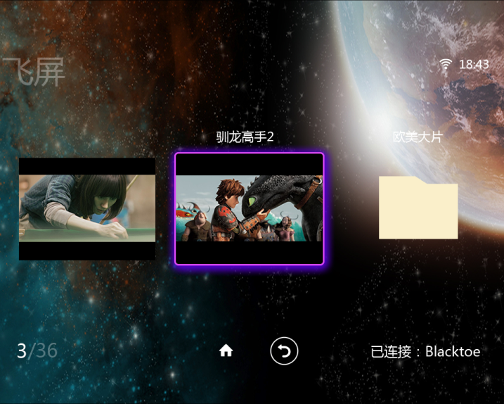 5、连接完成后,即可以看到该电脑中的视频内容,移动方向键,在相应的媒体类别上点击OK,即可开始播放对应视频。