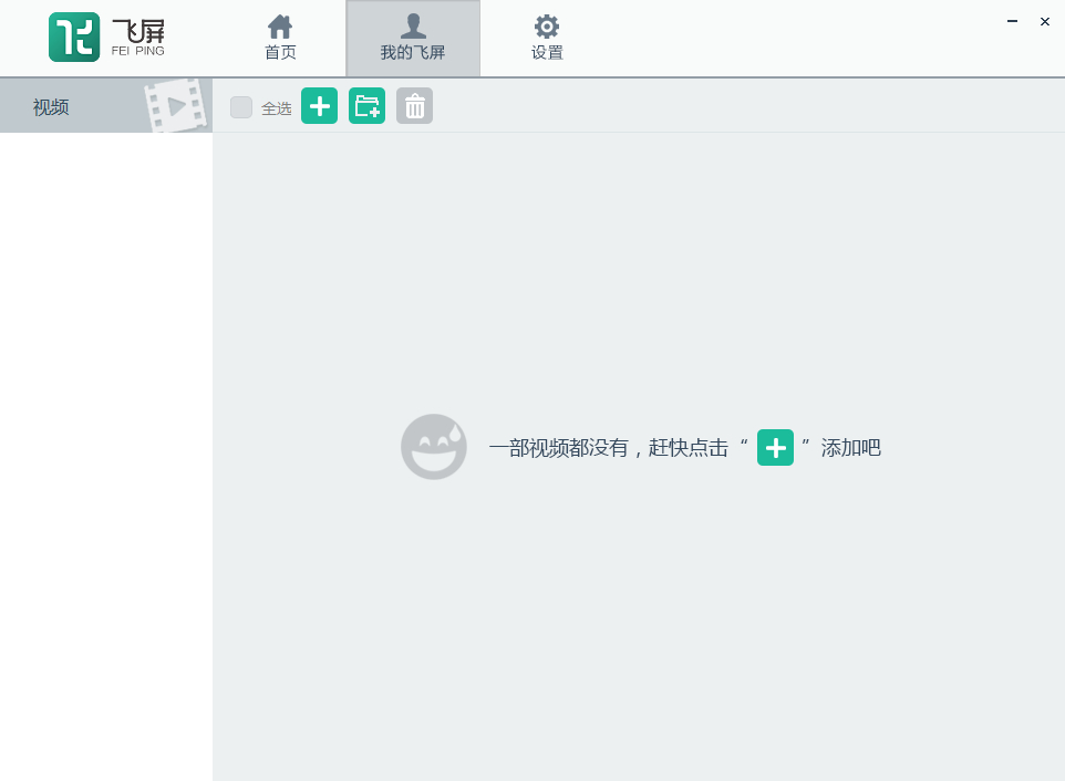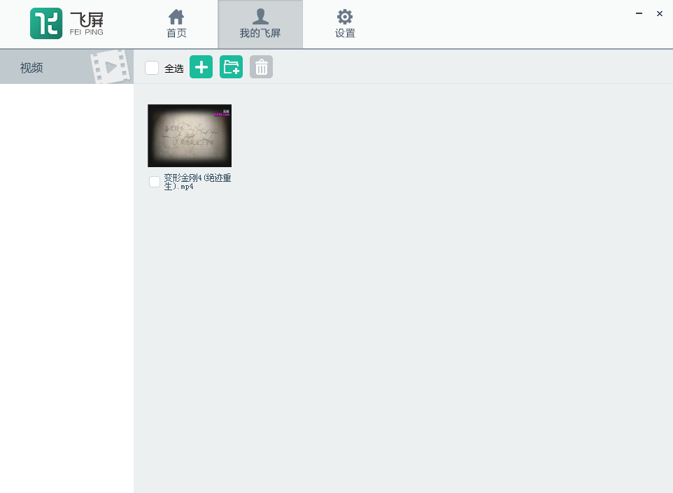 5、您也可以选择添加文件夹。添加文件夹的作用在于您直接将电脑中的文件夹添加至飞屏,当使用电视或魔镜查看飞屏内容时,可以直接看到文件夹内的所有视频。尤其当您将电脑中其他软件的下载文件夹添加至飞屏后,任何新下载的视频将自动出现在飞屏中。添加文件夹只要点击