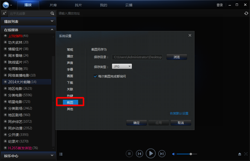 4、设置好之后,点击应用-确定。之后你观看视频的时候,就可以直接使用快捷键进行截图了。
