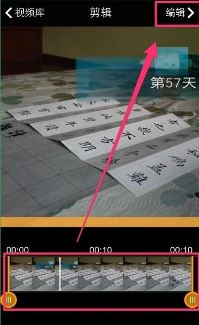 4、秒拍会对视频进行自动的裁剪,选择自己需要的片段,然后找到右上角的“编辑”按钮来进入下一步操作。