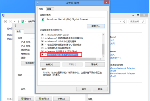 4、点击->以太网,选择属性,双击internet协议版本4。
