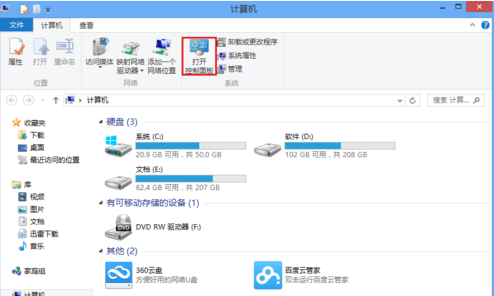 1、双击打开计算机,按ctrl+F1快捷键或点击右上角的隐藏菜单图标。