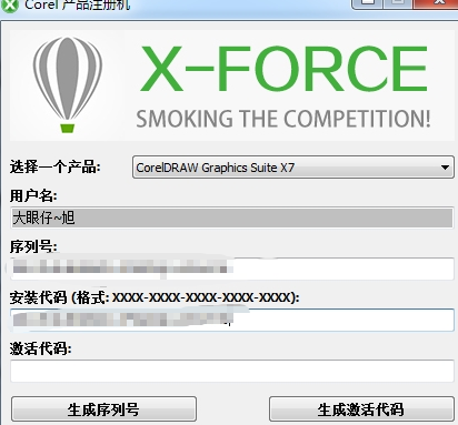 10、打开注册机,选择coreldraw x7选项,点击生成序列号