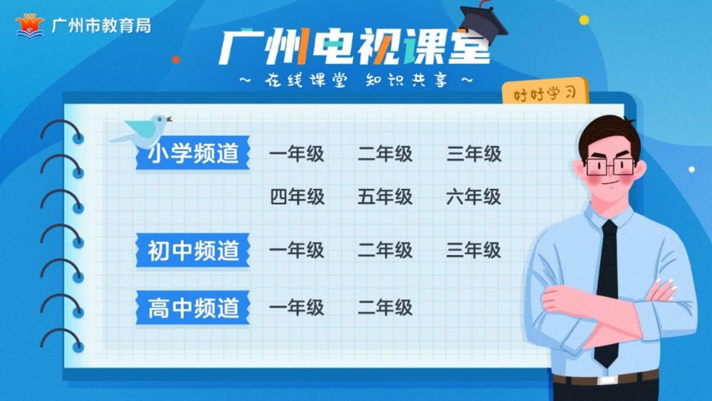 各年级课程内容均由指定电视频道播出,各年级课程对应的频道号如下: