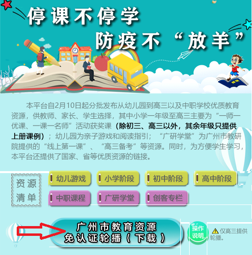 点击“广州市教育资源免认证轮播(下载)”栏目,如下图。