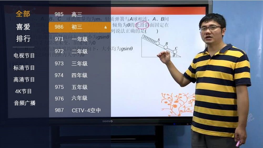 方式一:进入直播频道观看状态下,在频道列表中选择对应的年级。
