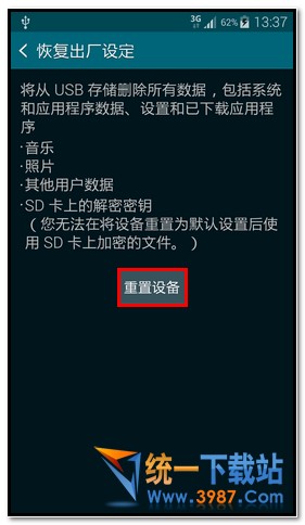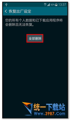 注意:在恢复出厂设置之前请备份您的通讯录、照片等个人信息,以免照成不必要的损失。