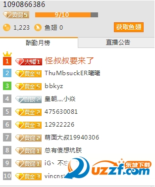 在房间内当天赠送达到10鱼翅,获得该房间铜牌粉丝头衔;
