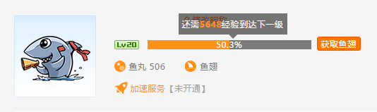 现在用户可获得经验值来提升等级。消耗鱼丸和鱼翅可获得升级经验,比如赠送礼物、改名、发送彩色弹幕都可以获得经验,100鱼丸=1点经验,0.1鱼翅=1点经验。