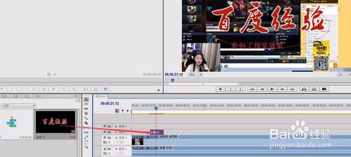 按住鼠标左键不放,将其拖动到视屏轨道2上,然后在节目面板上就可以看到字幕的预览效果