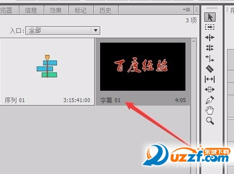 然后双击序列面板空白处,打开一个需要添加字幕的视频素材,