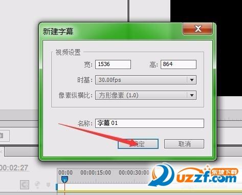 点击菜单栏上的字幕、新建字幕、静态字幕,在新建字幕对话框的确定按钮