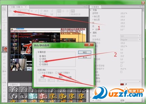 点击字幕游动/滚动按钮,在游动/滚动选项卡里选中滚动,左游动,右游动启动的一个(看个人的需要),选中下面开始于屏幕外和结束于屏幕外(这个必须选中,不然字幕效果出不来),确定