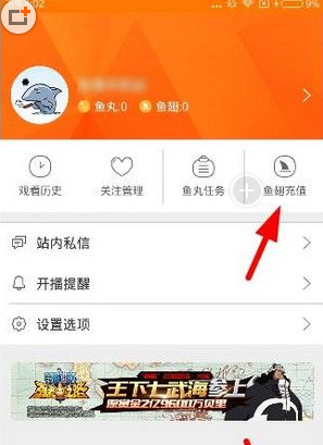 1、用户登录上斗鱼tv后,进入个人中心,然后点击“鱼翅充值”,如下图: