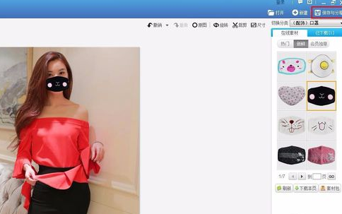 第六步:单击右上角“保存与分享”按钮,将p好的图片保存。