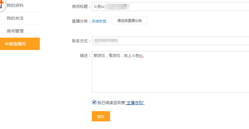 然后按要求填写内容,再由银行网银转账至斗鱼指定账号,客服在48小时内会处理完毕你的请求,审核状态可在个人用户中心处查看。