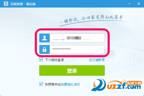 打开百度抢票客户端,输入12306网站的用户名和密码,点击登录,如图。