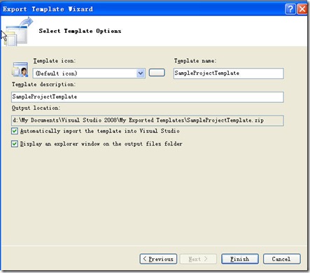 在这里,你可以选择是否自动将模板导入到Visual Studio ,还可以选择是否弹出显示导出的项目模板,点击完成即可完成项目模板的导出,并且此时,它会为我们自动导入到Visual Studio中,并且会弹出导出的项目模板目录,它是一个zip压缩文件。此时,我们再打开一个Visual Studio,新建项目时即可使用刚刚导出的模板。