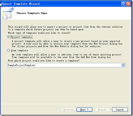 如果当前解决方案中有多个工程,我们可能通过下拦框选择希望被作为模板的项目,选择“Project template ”进入下一步: