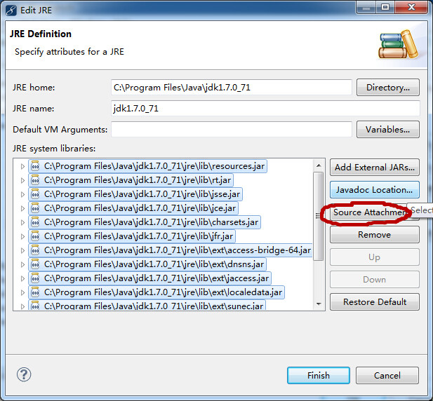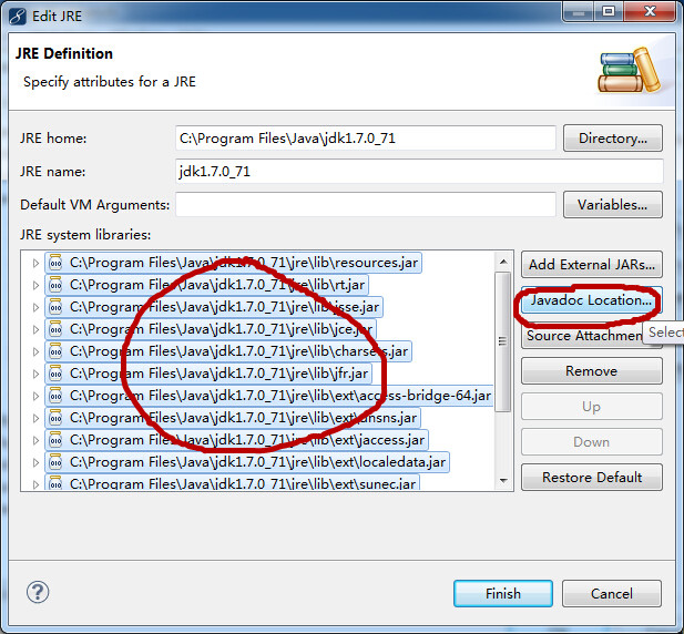 设置:进入windows->preferences->java->installed jres目录选中你的安装jres单击edit 在选中所有的jar,单击javadoc location 将路径指向你api 所在的位置即可。
