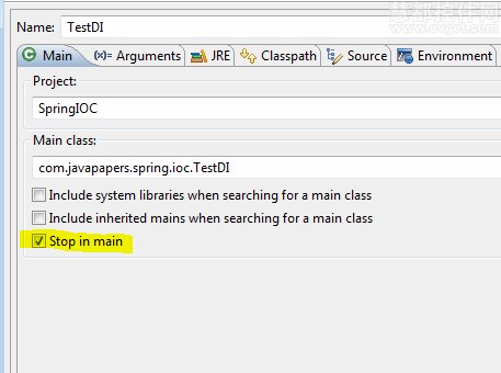在运行/调试设置中,编辑配置对话框中有“Main”这个选项卡,我们可以勾选“Stop in main”这个复选框。如果选中,那么在调试一个基于main方法的Java程序时,程序会在main方法第一行位置便停止执行。