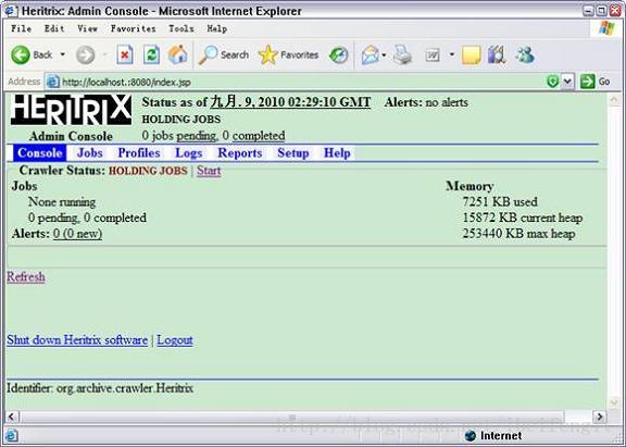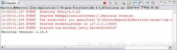 至此我们的 MyHeritrix 工程已经可以运行起来了。下面我们来看看如何启动 Heritrix 并设置一个具体的抓取任务。
