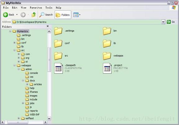 1)将 heritrix-1.14.4-src\src\java 下的 com、org 和 st 三个文件夹拷贝进 MyHeritrix 工程的 src 下。这三个文件夹包含了运行 Heritrix 所必须的核心源代码;