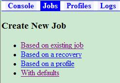在 Jobs 页面创建一个新的抓取任务,如图 11 所示,可以创建四种任务类型。