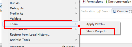 打开一个工程,在工程名上右键,点击team→share project,将你的工程另外导入到一个git文件夹。