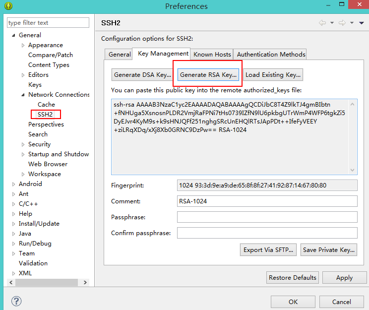 2、在Eclipse中生public key, 并添加到GitHub Repository中。