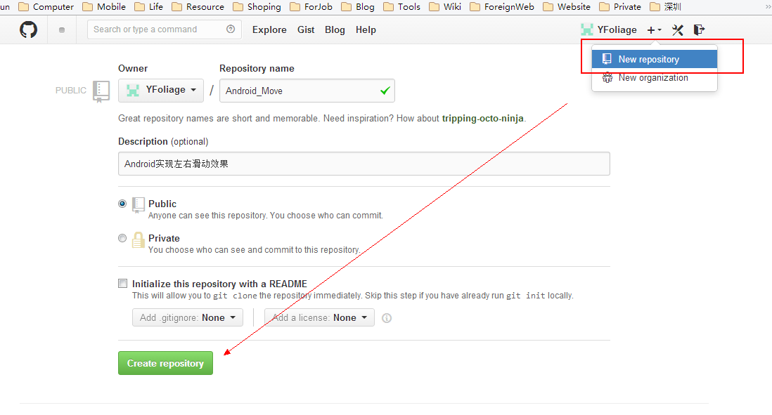然后需要输入你GitHub上项目的仓库地址,没有的话需要新建项目,步骤如下: