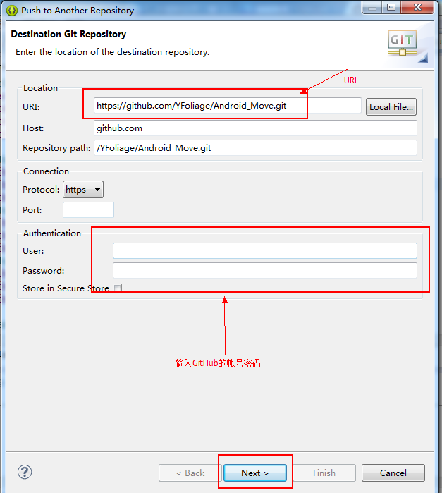 输入上面的URL地址,以及你的用户名和密码