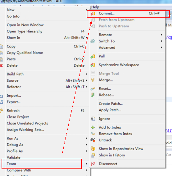 在项目上点右键–>team–>commit。commit是commit到本机的git库,而push才是同步到github。