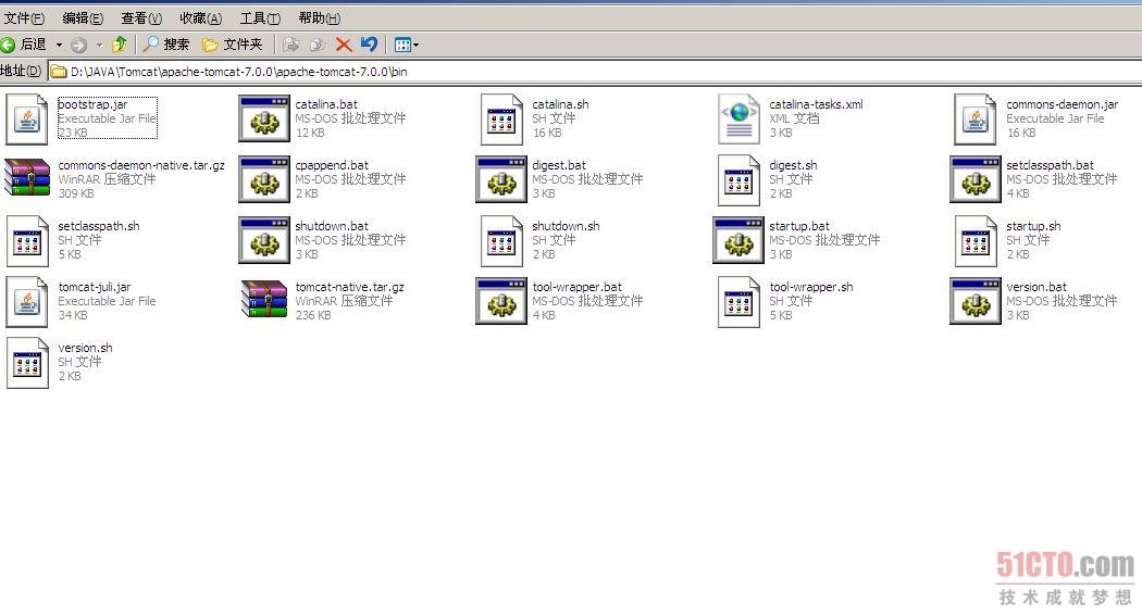 如图8所示 这里有一个startup.bat文件,点击它之后就可以运行Tomcat了