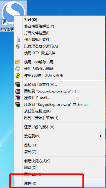 a、桌面找到搜狗浏览器图标,右键查看属性。