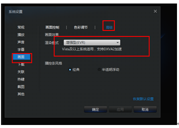 【4】可能是设置的问题,请打开迅雷看看播放器-主界面右键-设置-画面-高级-渲染模式里面有四种渲染模式,请每一种都分别尝试下。