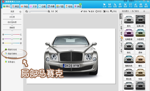 2、然后选择美化界面上的局部马赛克功能,单击进入操作界面: