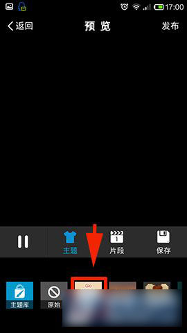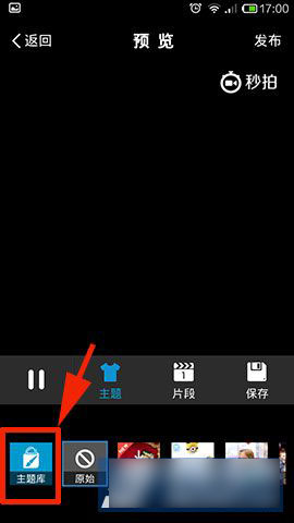 3)上面所示:进去以后找到自己喜欢的主题后方点击【下载】,下载完以后在自己做的视频左下方点击【主题库】(如下图所示)