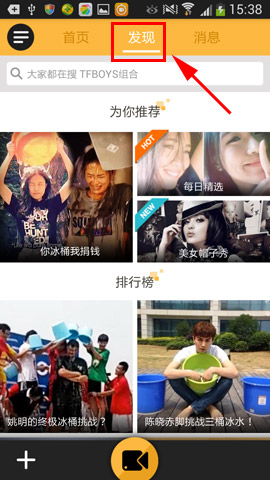1)安装并打开秒拍,在主界面中点击【发现】。(如下图)