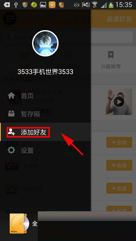 1)点击主界面的【三横】,选择【添加好友】。(如下图)