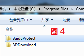 找到百度卫士的安装目录,即文件夹“Baidu",一般在C盘或D盘,这要看你安装在哪个盘。如图1。因为在”控制面板--程序--卸载或更改程序“中卸载过一次,此时的安装目录文件夹”Baidu“基本为空的无用文件,可以直接删掉。如果提示”文件在使用中,不能删除“,只要重新启动,即可删掉。