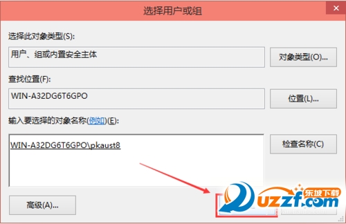 在选择用户或组界面里点击确定,如下图所示。
