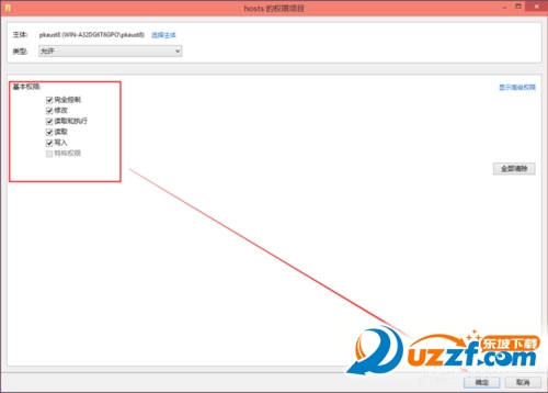 将hosts的权限项目界面下的基本权限的所以项目都勾选上,然后点击确定,如下图所示。