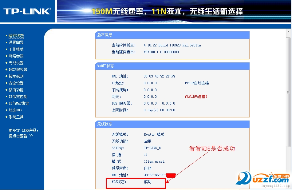 注意:主路由器不能开启WDS,否则会导致主路由器故障