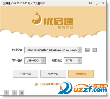 优启通v3全新设计了U盘启动制作程序,直观明了、操作简易!