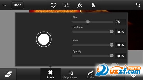上面小编已经提到过,由于手机屏幕尺寸的限制,很多功能也随时受限。比如如果我们想换一下刷子或是抓取工具的类型的话,需要点很多次才能完成。如果你刚刚在PC上使用过PS的话,那么Android手机版的PS会让你觉得操作起来非常缓慢和繁琐。