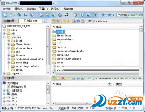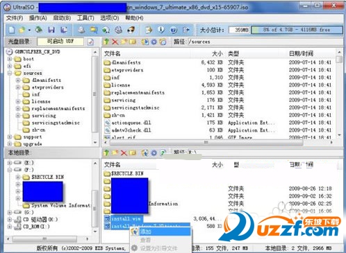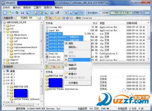 31、② 安装UltraISO。用UltraISO打开Windows7原版光盘镜像,在光盘镜像sources目录找到install.wim和5个intall_Windows 7******.clg文件,将它们全部删除。