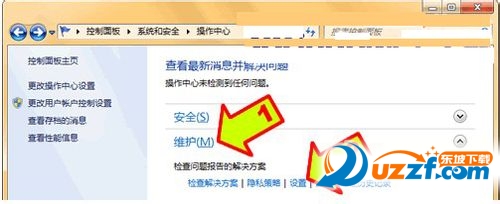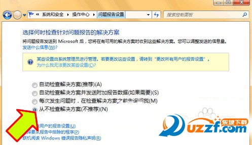3、接下来,再点击“维护”,在展开的详细设置内容中找到并点击“检查问题报告的解决方案”下方的“设置”,在弹出页面内选择“从不检查解决方案(不推荐)”,点击“确定”就可以禁用错误报告了。